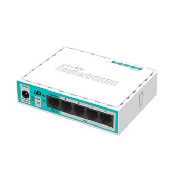 The hEX lite is a small five port Ethernet router in a nice plastic case.